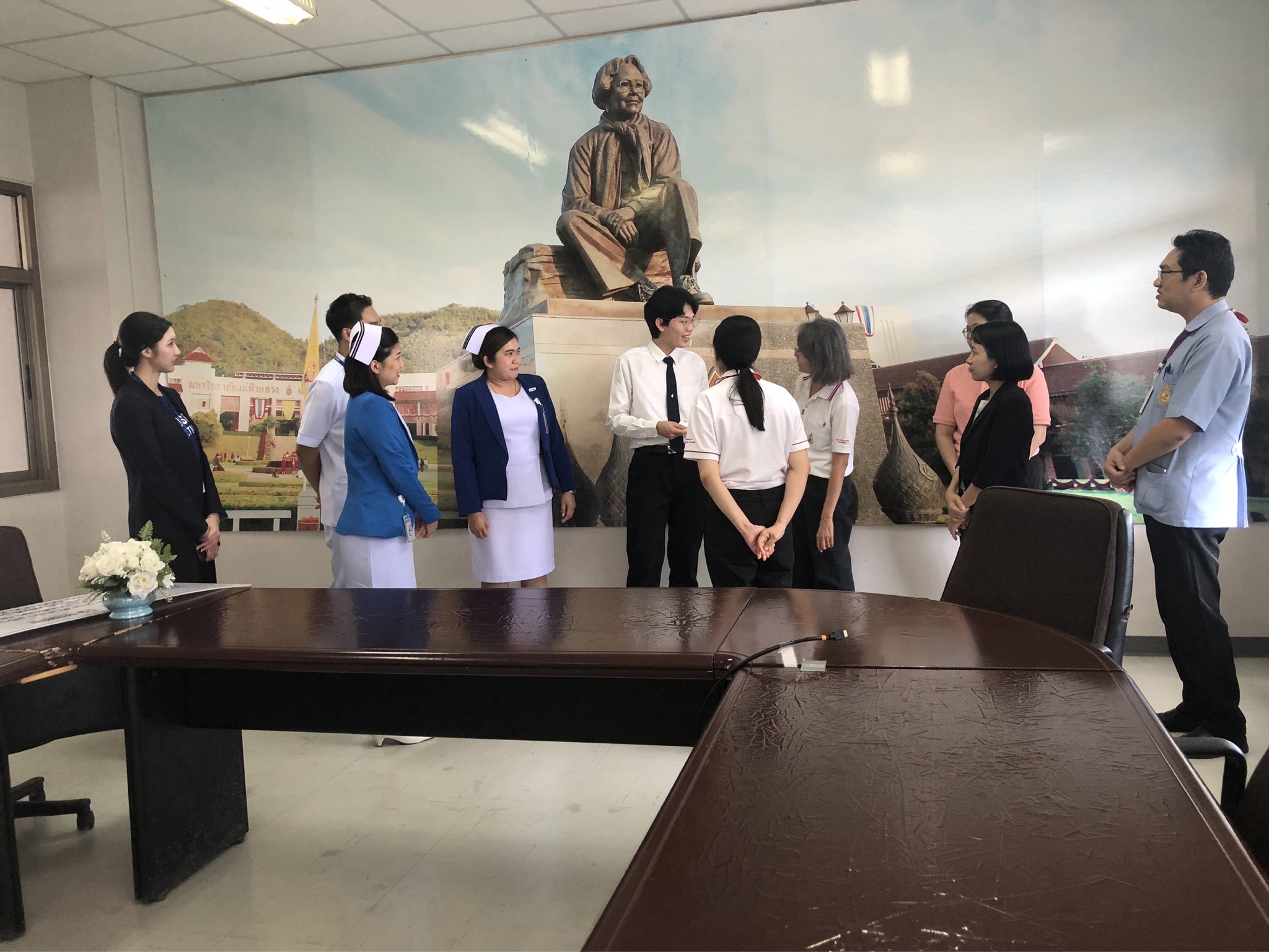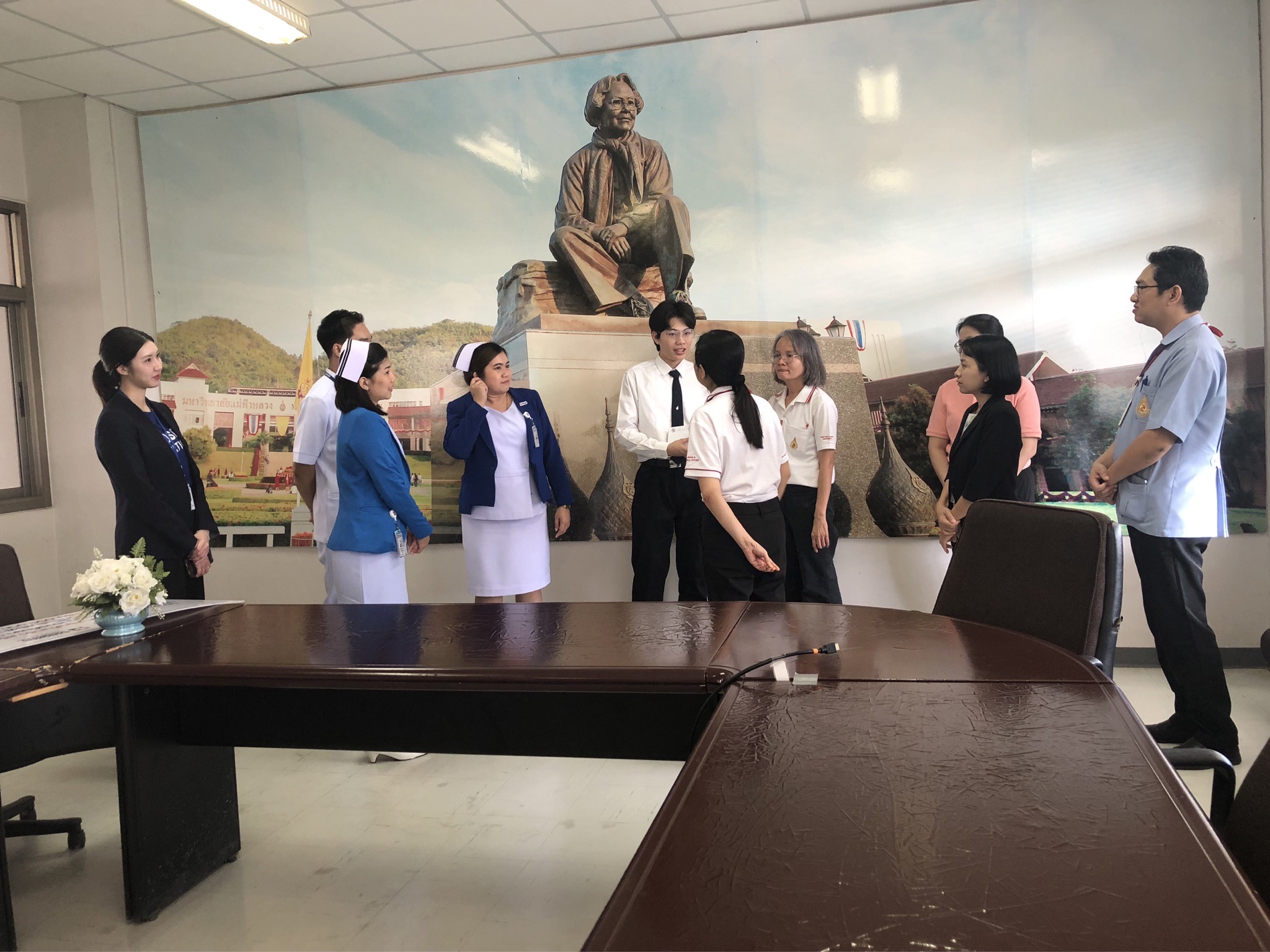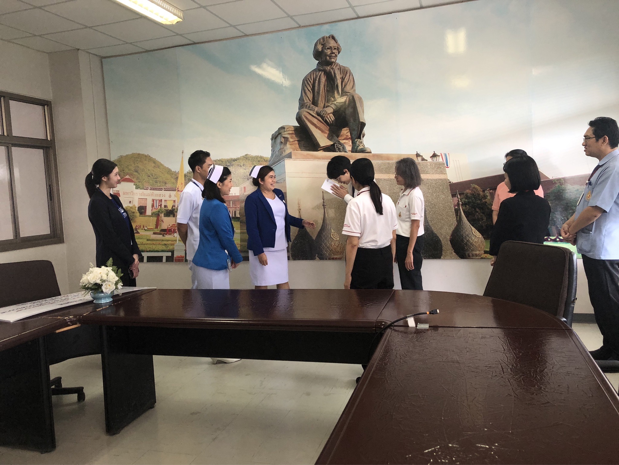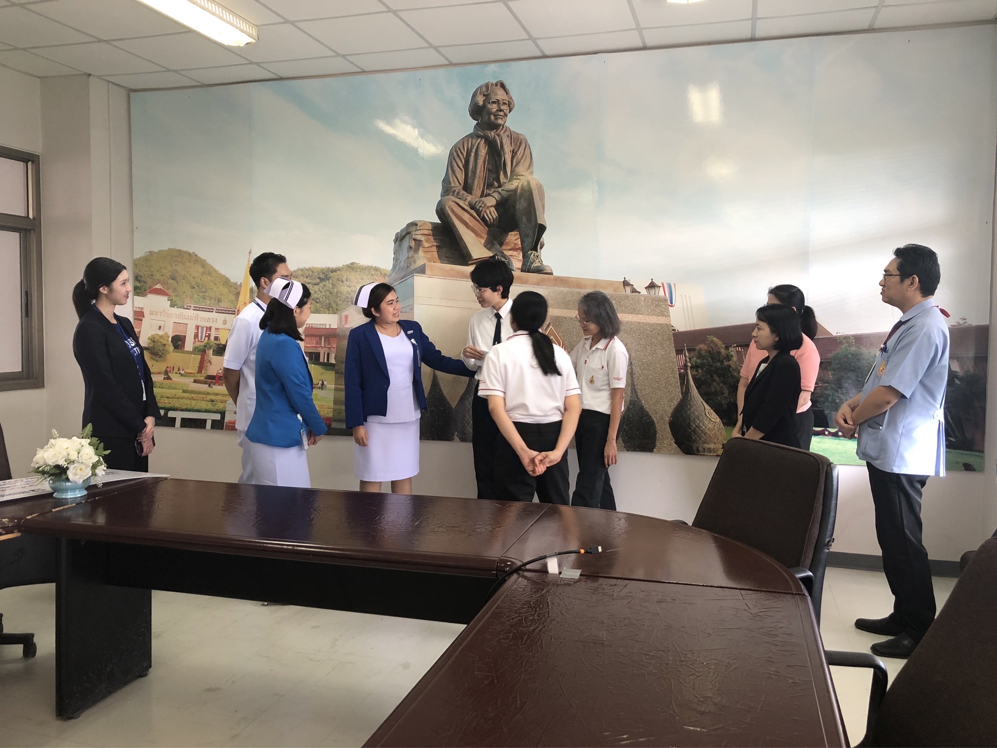 On October 21, 2025, Assistant Professor Dr. Katemanee Moonpanane, Assistant Dean of the School of Nursing, Mae Fah Luang University, welcomed a delegation from Bangkok Hospital Chiang Rai, representing the Vejdusit Foundation under the patronage of Her Royal Highness Princess Galyani Vadhana, the Princess Royal, to present scholarships under the "Vejdusit Nurturing Future Nurses" project. The scholarships were awarded to outstanding nursing students who lack financial resources.