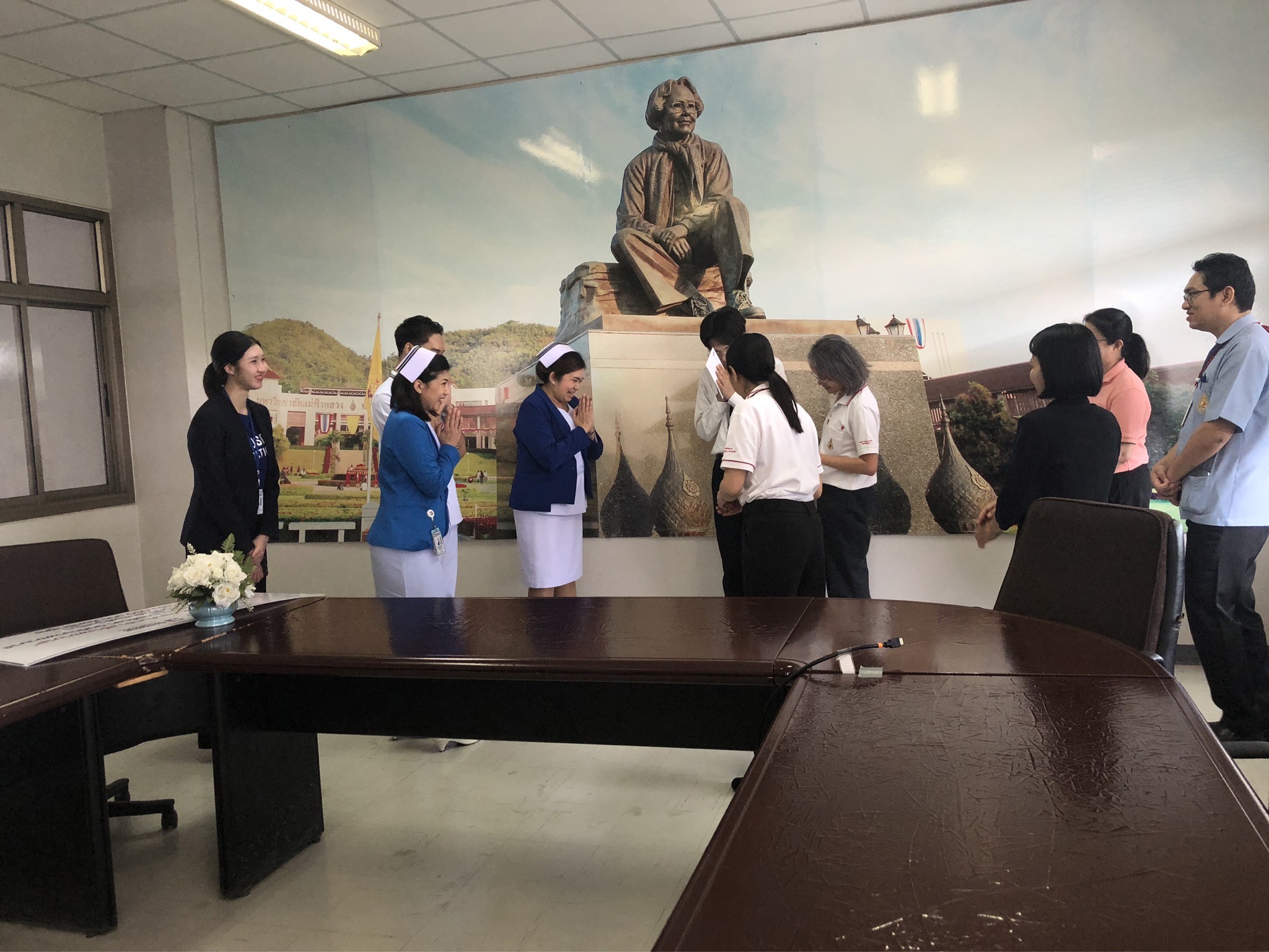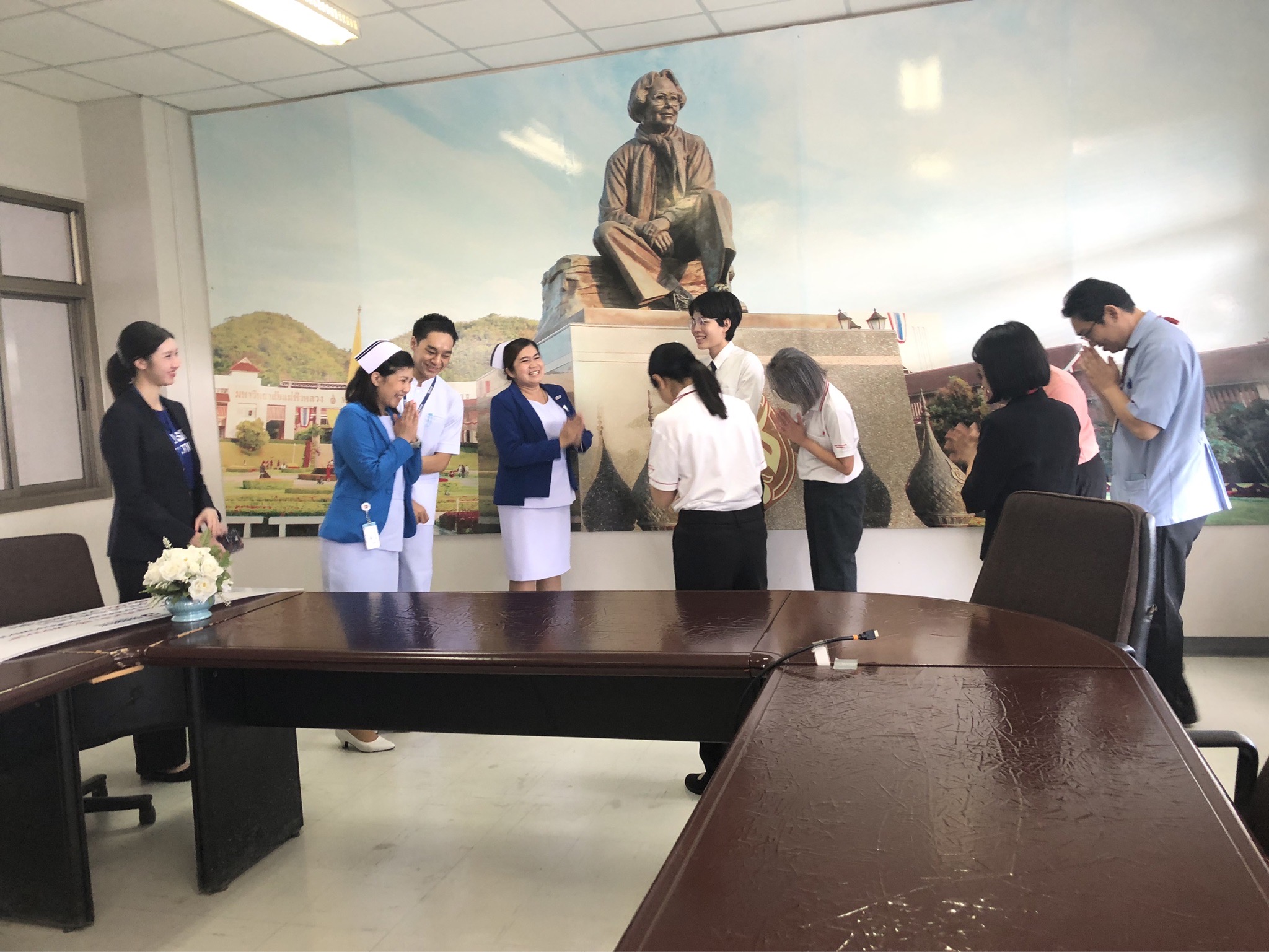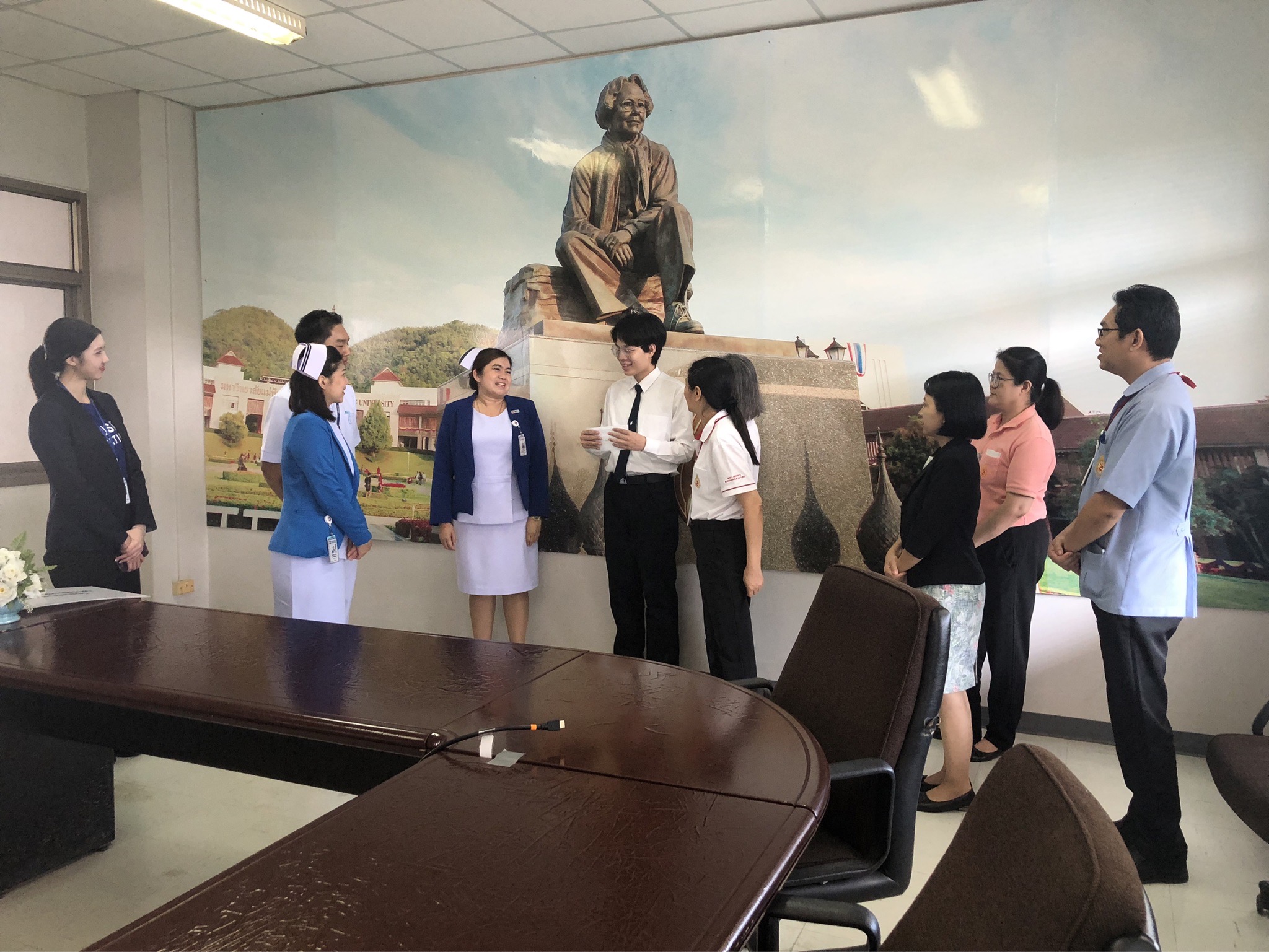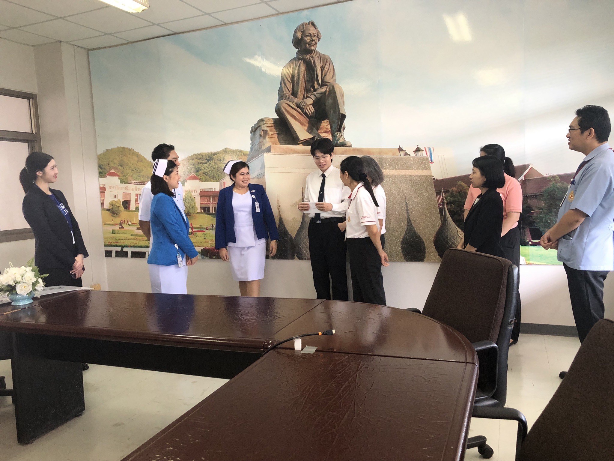 On October 21, 2025, Assistant Professor Dr. Katemanee Moonpanane, Assistant Dean of the School of Nursing, Mae Fah Luang University, welcomed a delegation from Bangkok Hospital Chiang Rai, representing the Vejdusit Foundation under the patronage of Her Royal Highness Princess Galyani Vadhana, the Princess Royal, to present scholarships under the "Vejdusit Nurturing Future Nurses" project. The scholarships were awarded to outstanding nursing students who lack financial resources.
