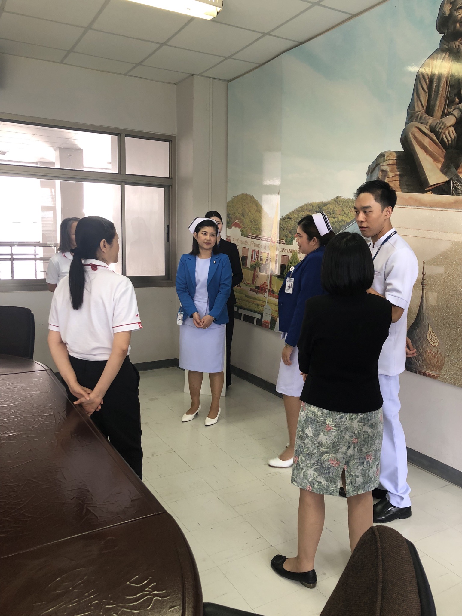 วันที่ 21 ตุลาคม 2568 ผู้ช่วยศาสตราจารย์ ดร. เกศมณี มูลปานันท์ ผู้ช่วยคณบดี สำนักวิชาพยาบาลศาสตร์ มหาวิทยาลัยแม่ฟ้าหลวง ให้การต้อนรับคณะผู้แทนจากโรงพยาบาลกรุงเทพ เชียงราย ซึ่งเป็นผู้แทนจากมูลนิธิเวชดุสิต ในพระอุปถัมภ์สมเด็จพระเจ้าพี่นางเธอ เจ้าฟ้ากัลยาณิวัฒนา กรมหลวงนราธิวาสราชนครินทร์ เพื่อมอบทุนการศึกษาในโครงการ “เวชดุสิตปลูกต้นกล้า สร้างพยาบาล” ให้แก่นักศึกษาสำนักวิชาพยาบาลศาสตร์ที่เรียนดีแต่ขาดทุนทรัพย์