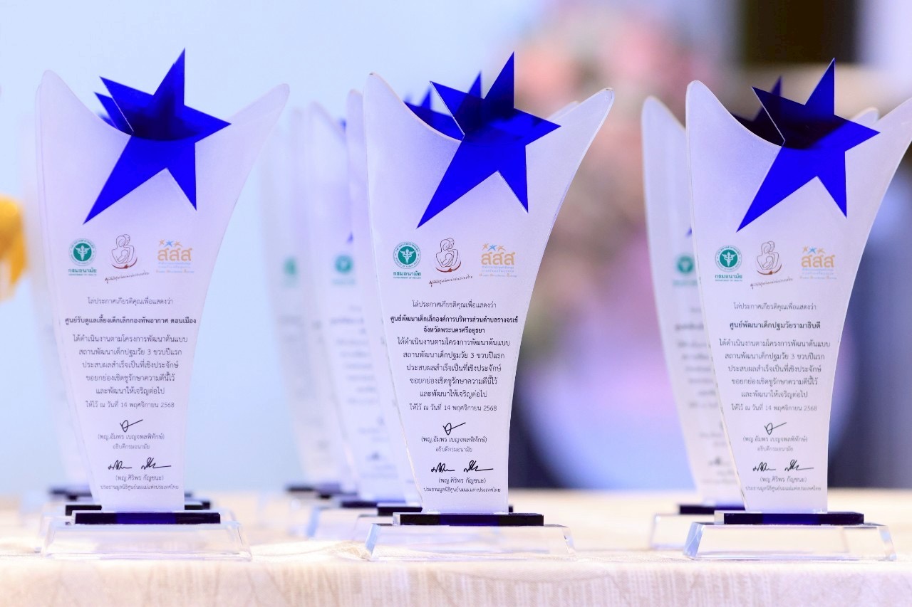 On November 14, 2025, Lecturer Pimkanabhon Trakooltorwong, representing the MFU Child Home, School of Nursing, Mae Fah Luang University, received the honorary award “Model Early Childhood Development Center for Under Three-Year-Old Children” from Dr. Amporn Benjaponpitak, Director-General of the Department of Health, Ministry of Public Health, and Dr. Siriporn Kanchana, Chairperson of the Thai Breastfeeding Centre Foundation.