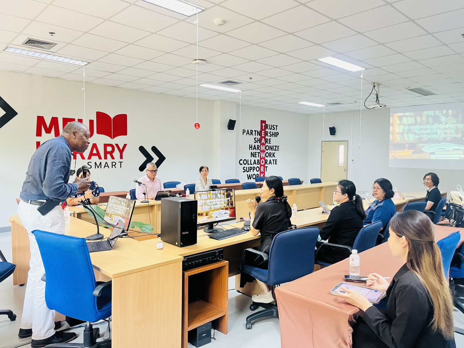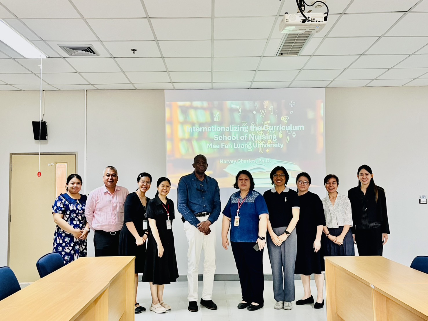 On April 21, 2026, the School of Nursing at Mae Fah Luang University, led by Dr. Piyatida Junlapeeya (Chair of the Internationalization Promotion Committee), Assistant Professor Waraphorn Yaemmisri (Chair of the Student Development and Alumni Relations Committee), and faculty members, participated in an academic exchange with international expert Dr. Harvey Charles.