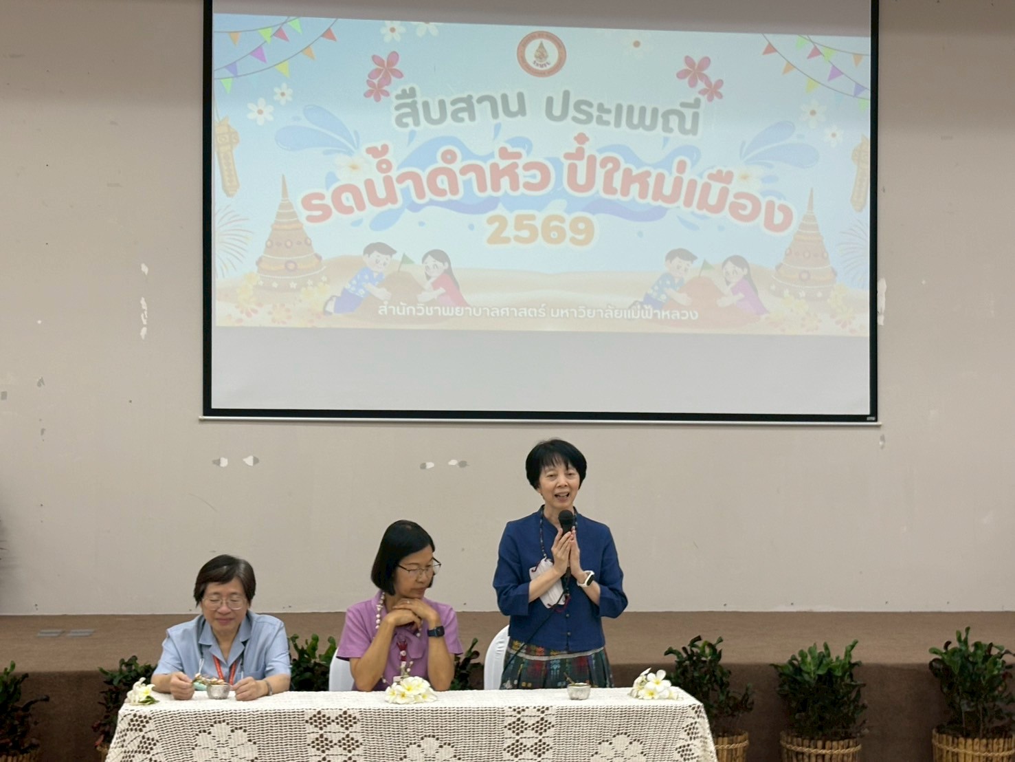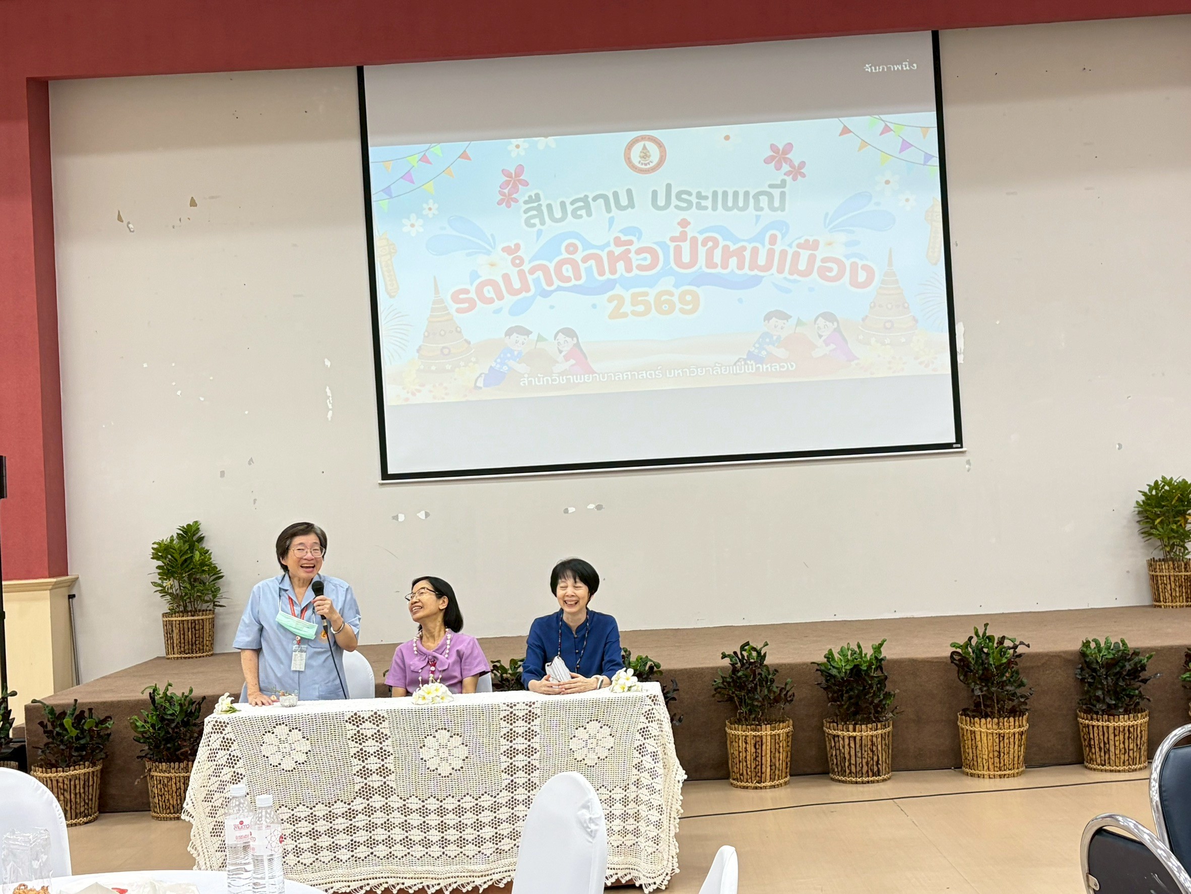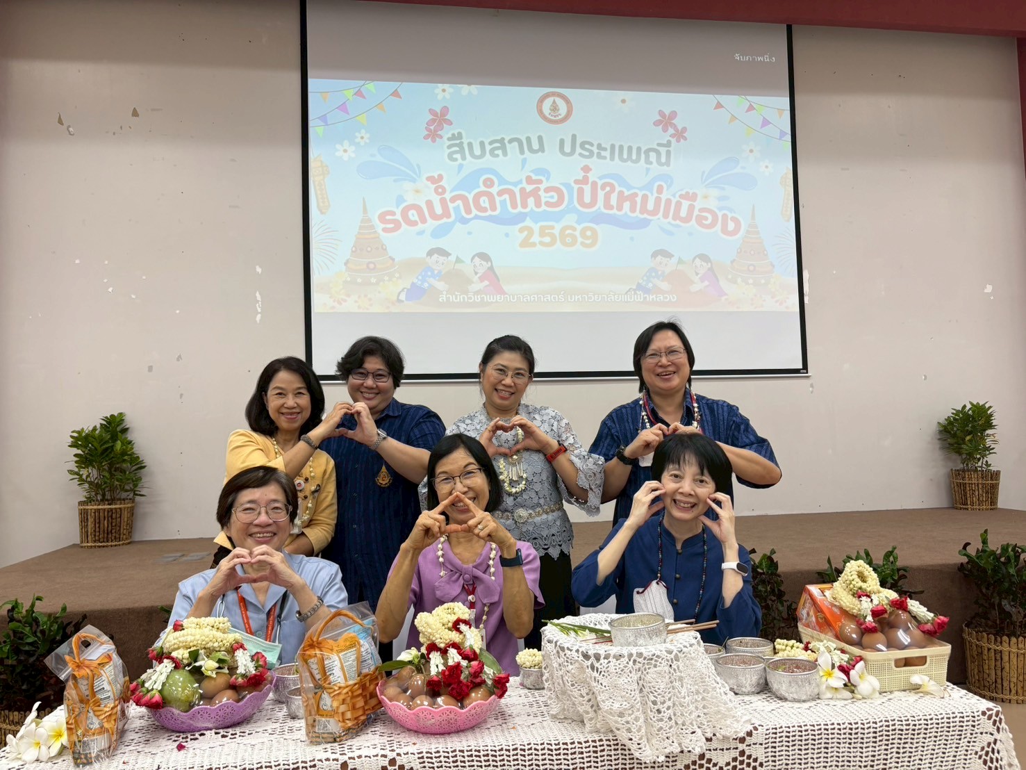 สำนักวิชาพยาบาลศาสตร์ มหาวิทยาลัยแม่ฟ้าหลวง ได้จัดกิจกรรม สืบสานประเพณี รดน้ำดำหัว ปี๋ใหม่เมือง สำนักวิชาพยาบาลศาสตร์ ประจำปี 2569 เมื่อวันพฤหัสบดีที่ 23 เมษายน 2569 ณ อาคาร M3 ห้อง 518 โดยมีคณาจารย์ บุคลากรi และนักศึกษาเข้าร่วมกิจกรรมอย่างพร้อมเพรียง ท่ามกลางบรรยากาศแห่งความอบอุ่นและความสามัคคี