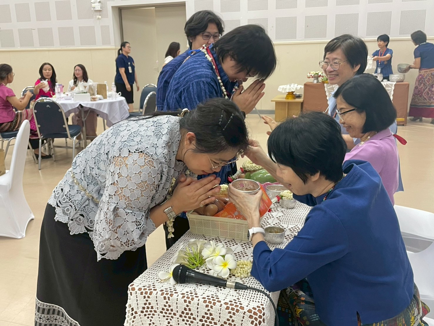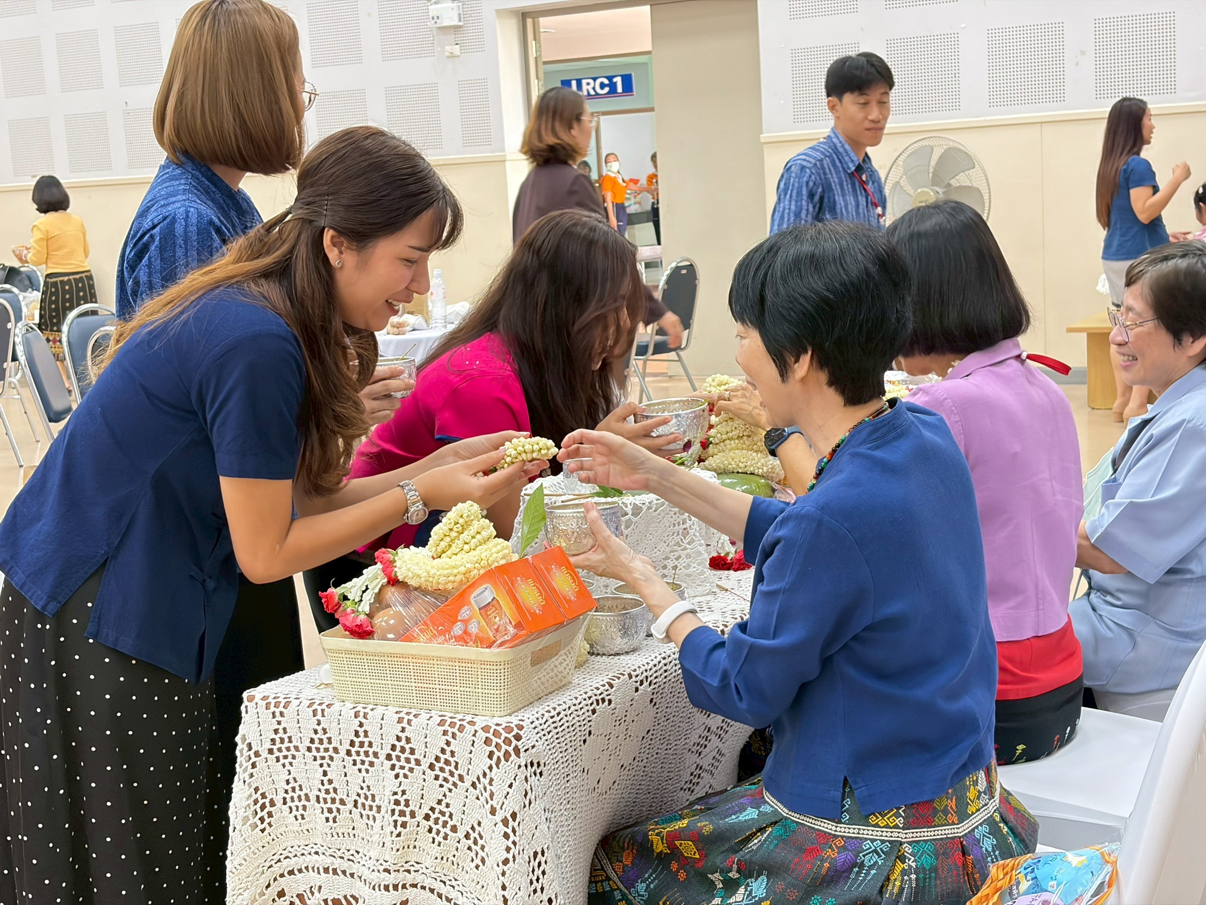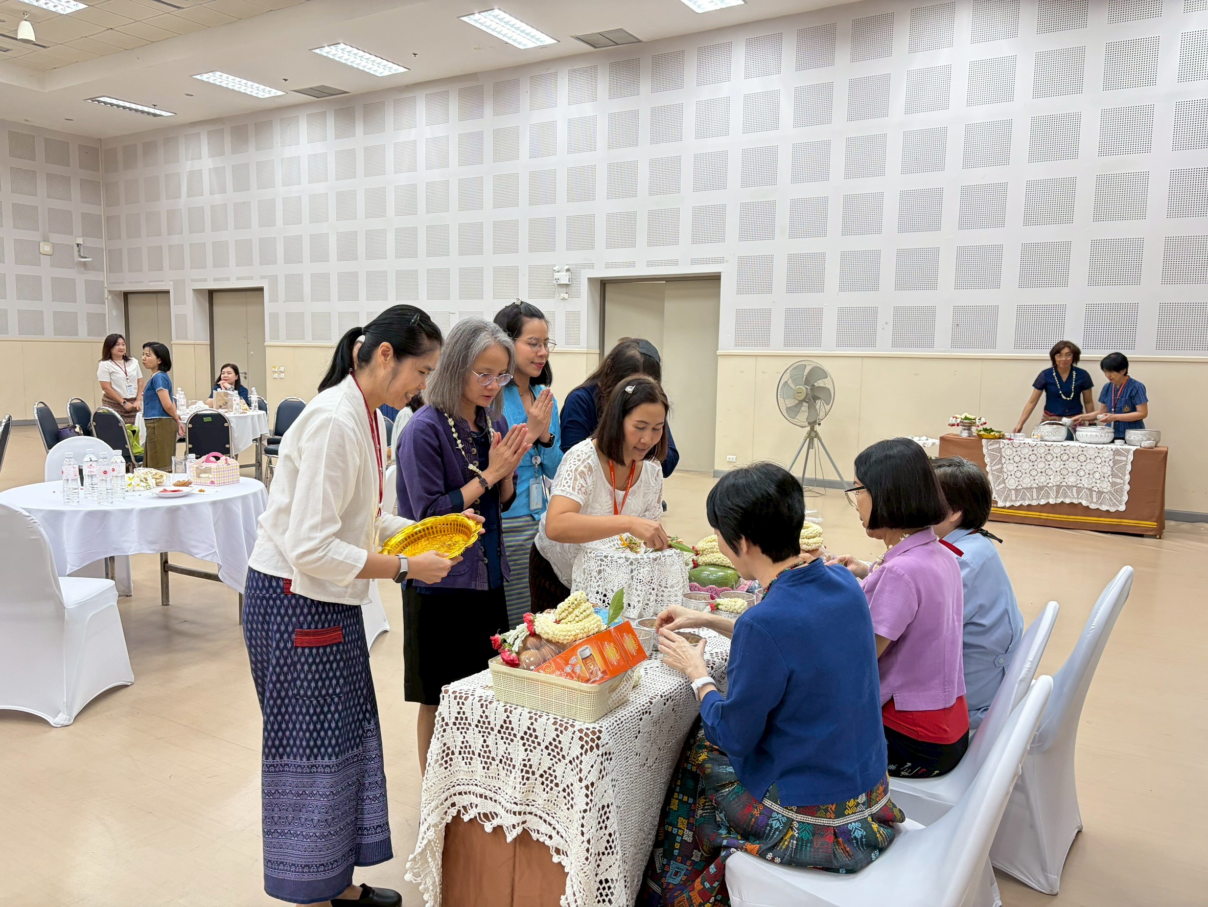 The ceremony included the traditional water-pouring ritual to honor the Dean and senior faculty members, expressing gratitude, respect, and receiving blessings for the Northern Thai New Year.