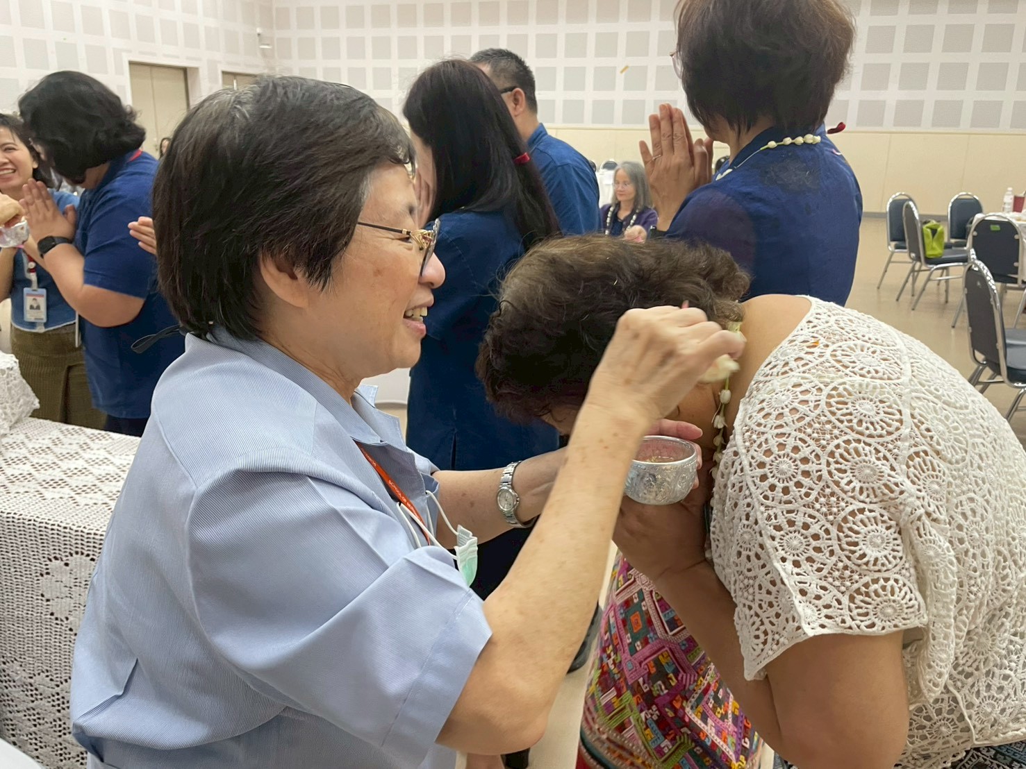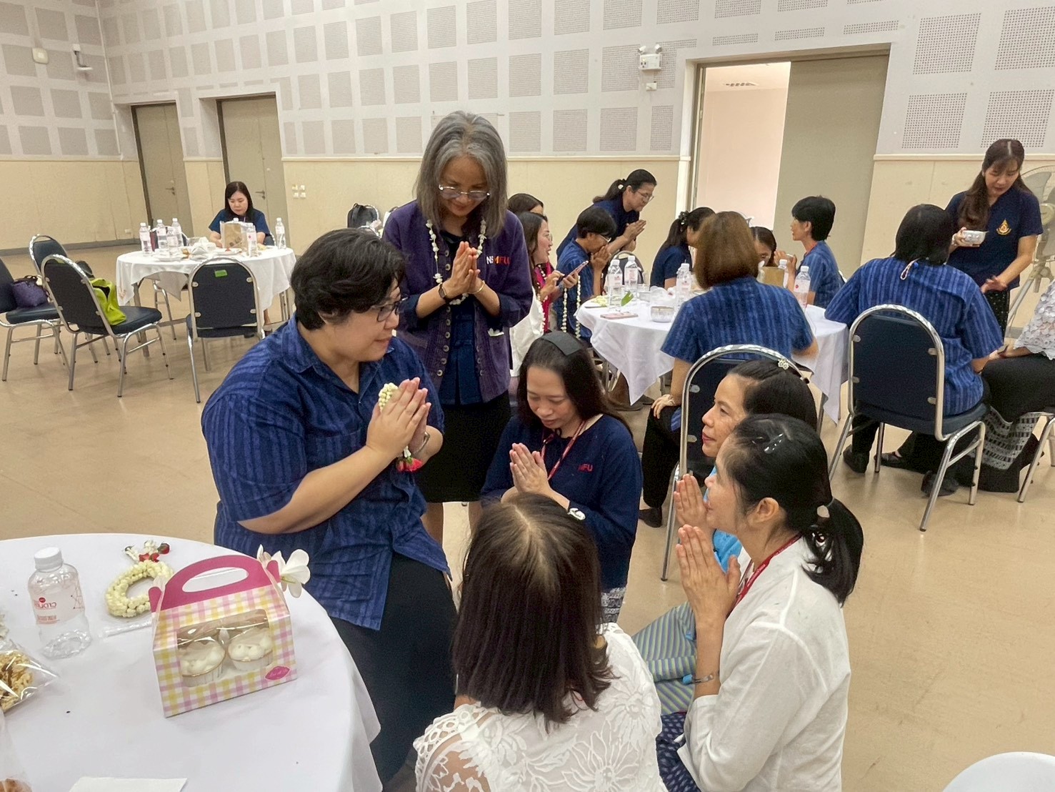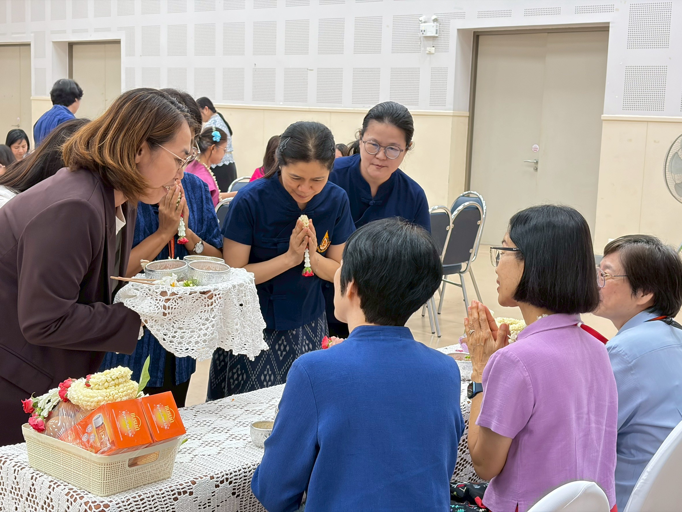 The ceremony included the traditional water-pouring ritual to honor the Dean and senior faculty members, expressing gratitude, respect, and receiving blessings for the Northern Thai New Year.