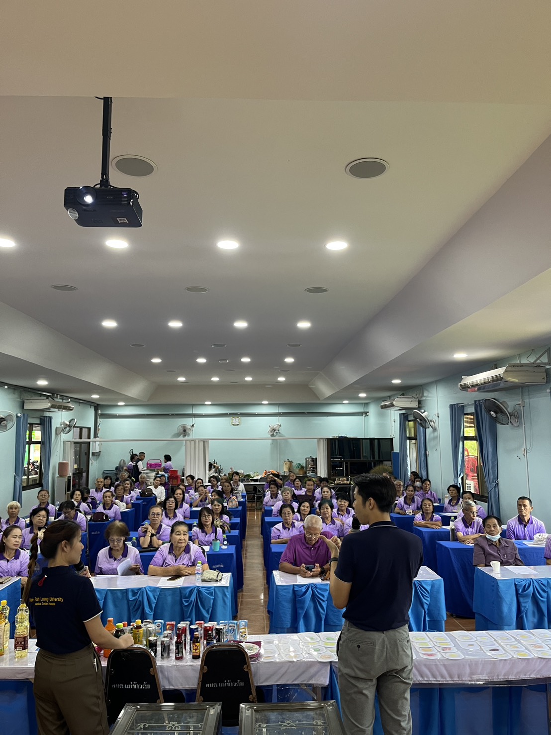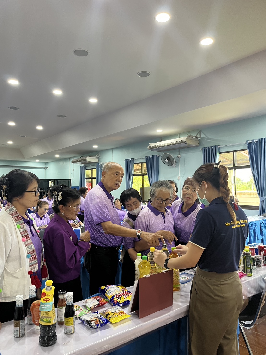 On September 25, 2025, the Princess Mother’s Medical Volunteer Foundation of Mae Fah Luang University provided knowledge-building services and self-care skill training for the elderly on the topic “How to Eat Well for Healthy Aging.” The event was held at the Mae Khao Tom Subdistrict Meeting Hall, Mueang District, Chiang Rai Province.