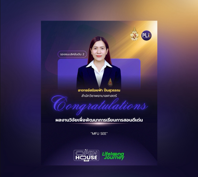 ???? รองชนะเลิศอันดับ 2: อาจารย์สร้อยฟ้า ปิ่นสุวรรณ จากผลงานเรื่อง “MFU SEE”