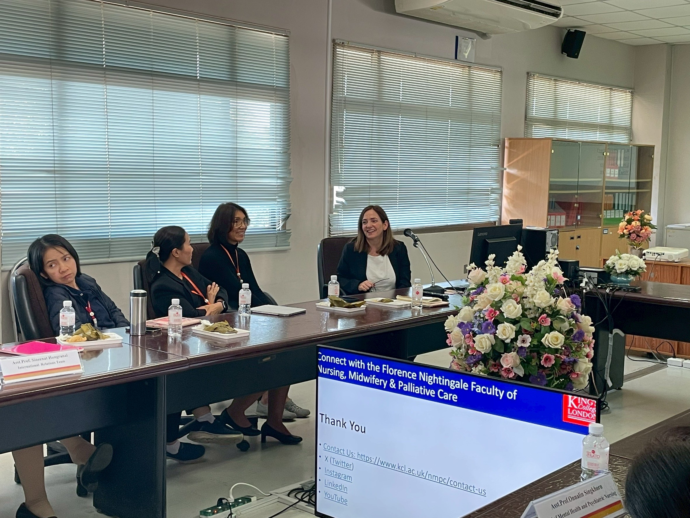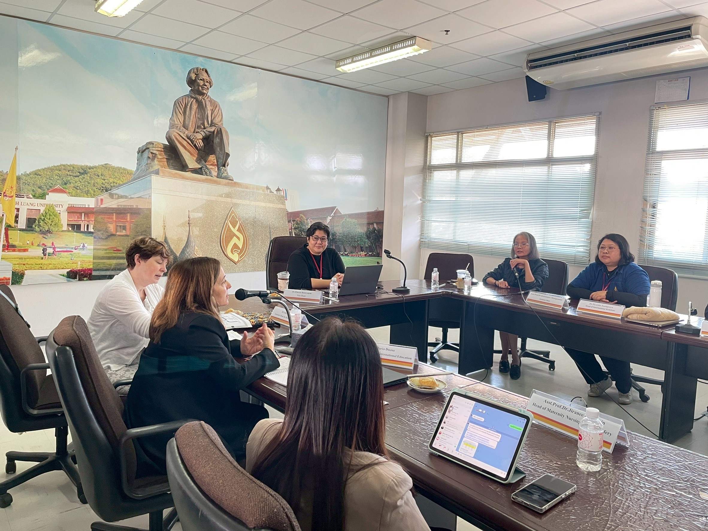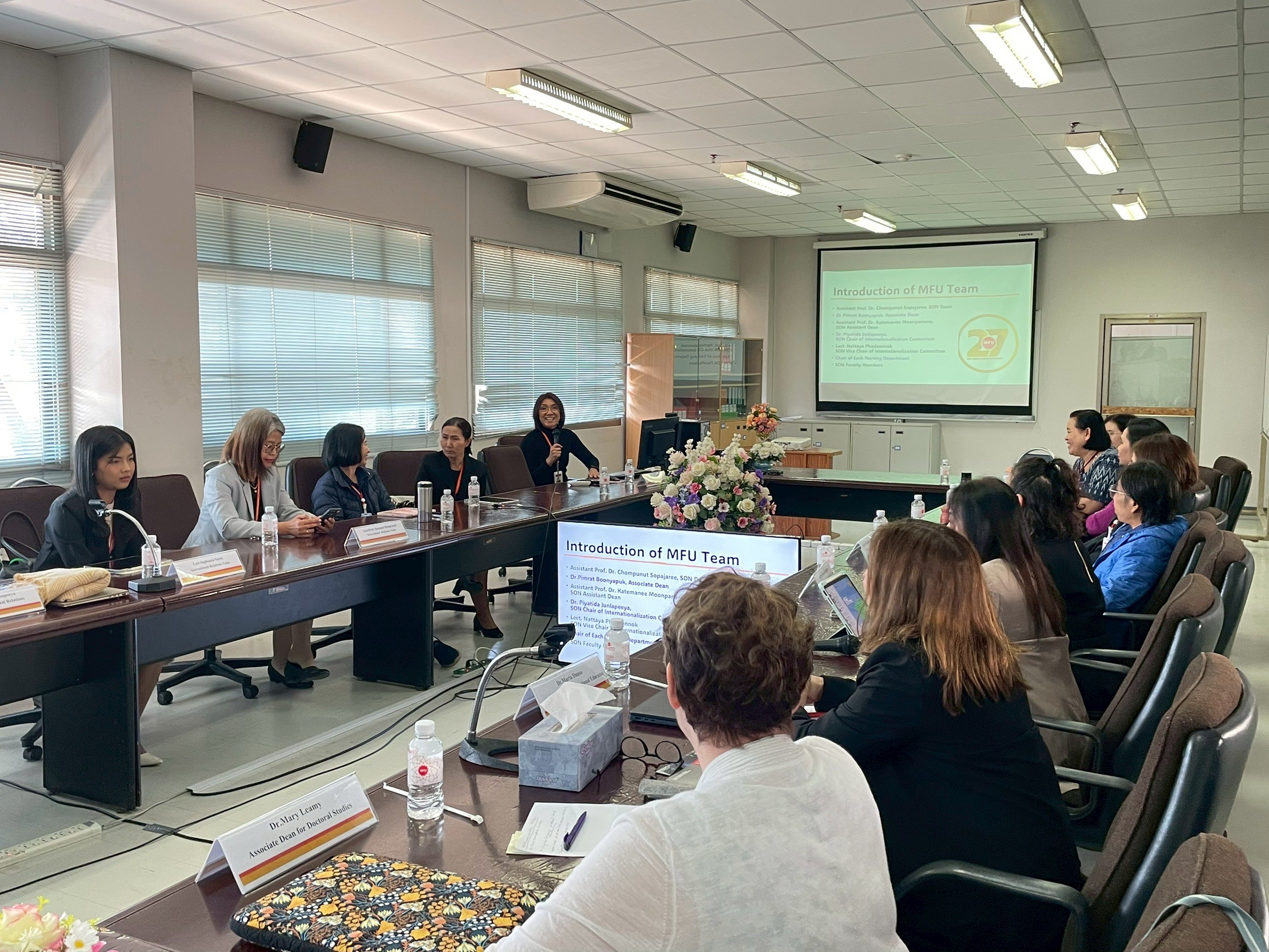 On January 19, 2026, the School of Nursing, Mae Fah Luang University (MFU), led by Dr. Pimrat Boonyapuk, Associate Dean, together with Assistant Professor Dr. Katemanee Moonpanane Assistant Dean, Dr. Piyatida Junlapeeya, Chair of the Internationalization Promotion Committee, and faculty members of the MFU School of Nursing, warmly welcomed and held a meeting with