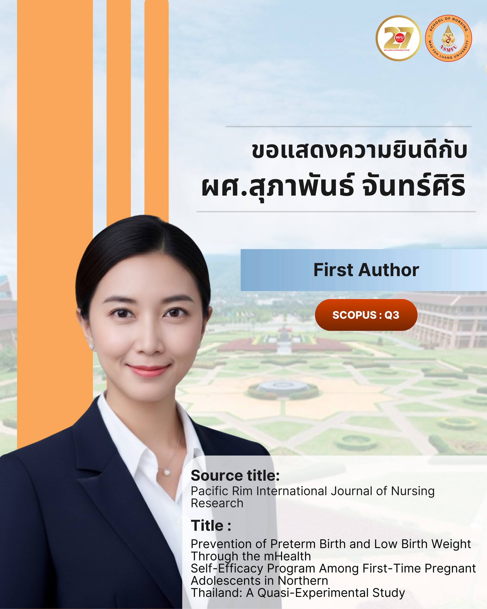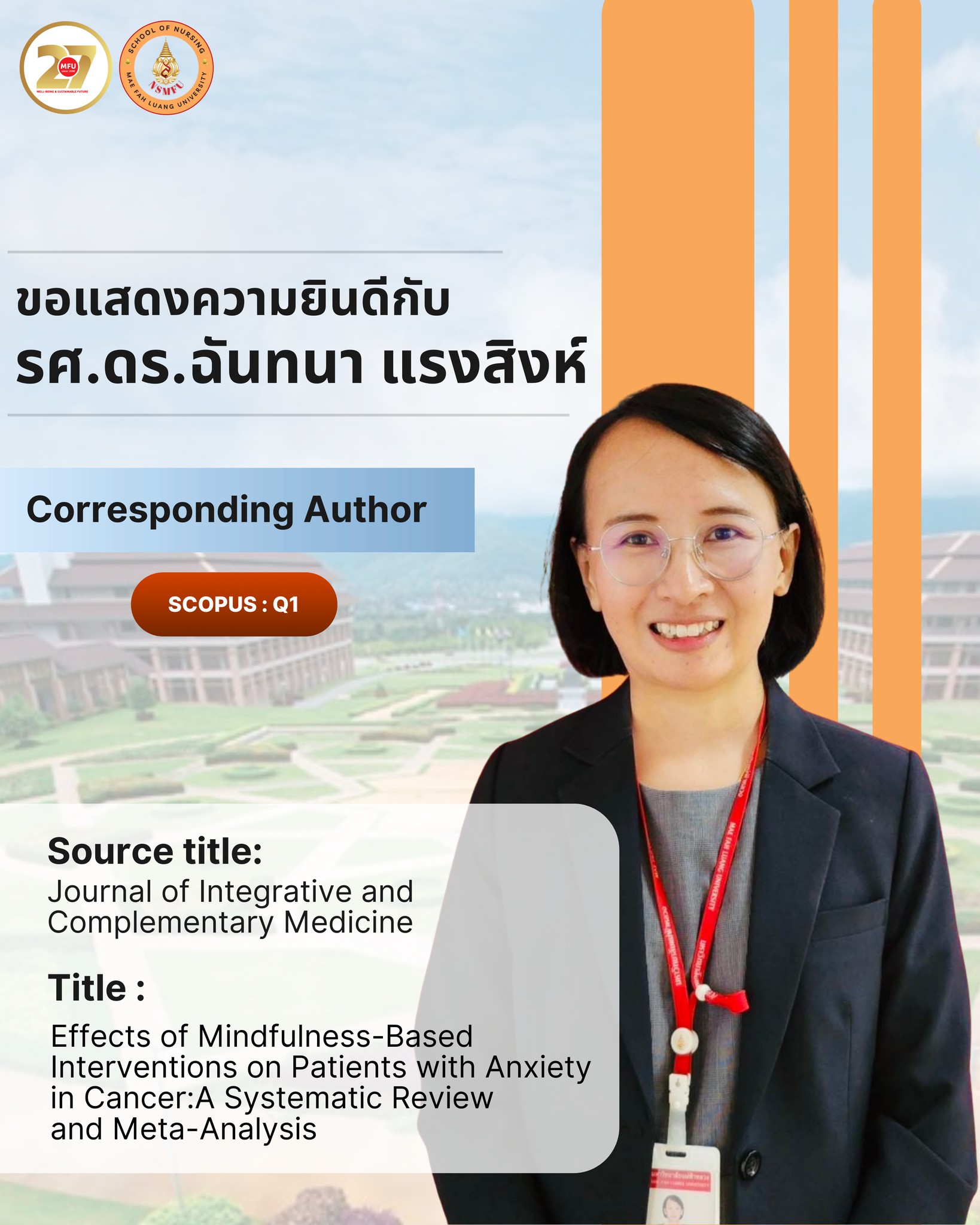 The School of Nursing, Mae Fah Luang University, would like to extend its congratulations to the faculty members whose research articles have been published in international journals, as follows: