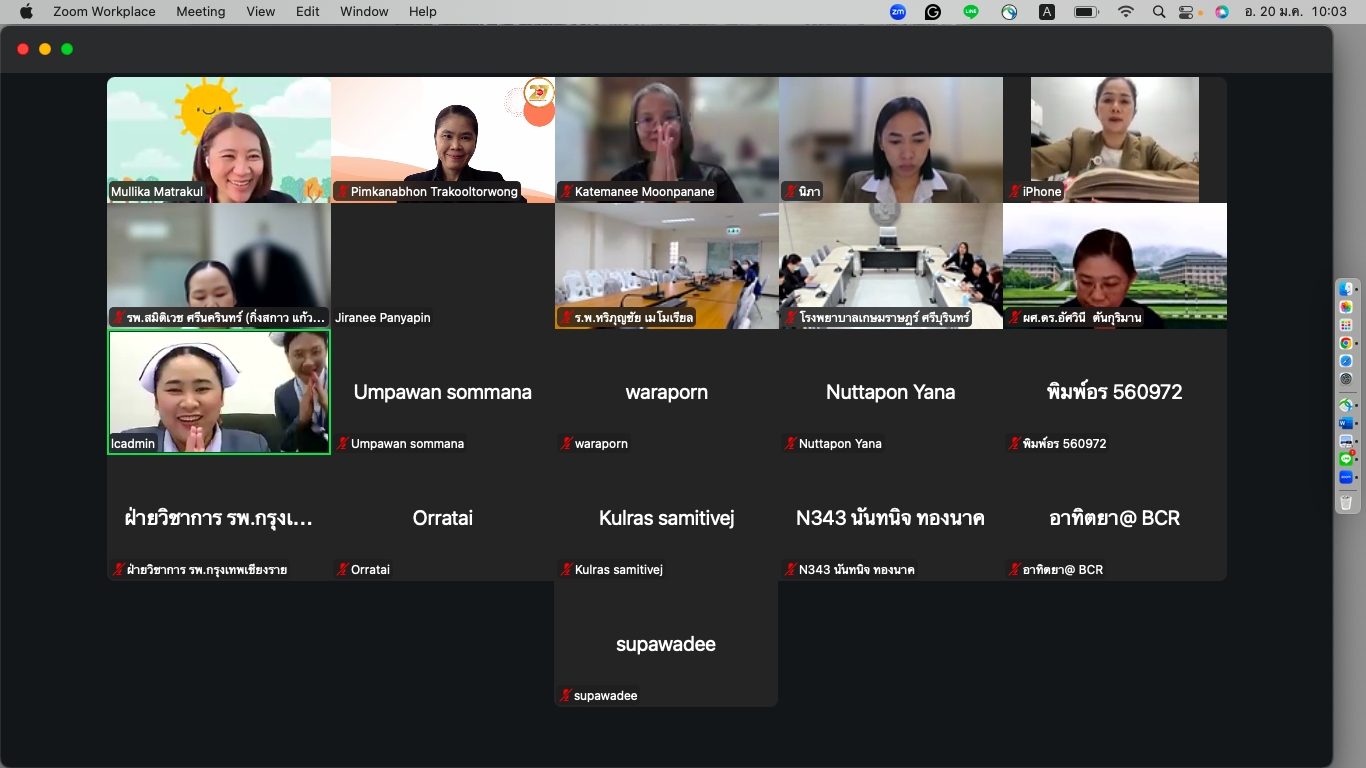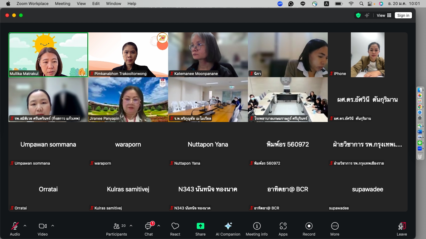 วันที่ 20 มกราคม 2569 ได้มีการจัดประชุมออนไลน์ระหว่างอาจารย์นิเทศกับครูพี่เลี้ยงประจำโรงพยาบาลทุกแห่งที่เป็นแหล่งฝึกปฏิบัติงาน เพื่อสร้างความเข้าใจร่วมกันเกี่ยวกับแนวทางการจัดการเรียนการสอน รูปแบบการฝึกปฏิบัติ การประเมินผล ตลอดจนบทบาทหน้าที่ของอาจารย์นิเทศและครูพี่เลี้ยงในการสนับสนุนการเรียนรู้ของนักศึกษาอย่างมีประสิทธิภาพ