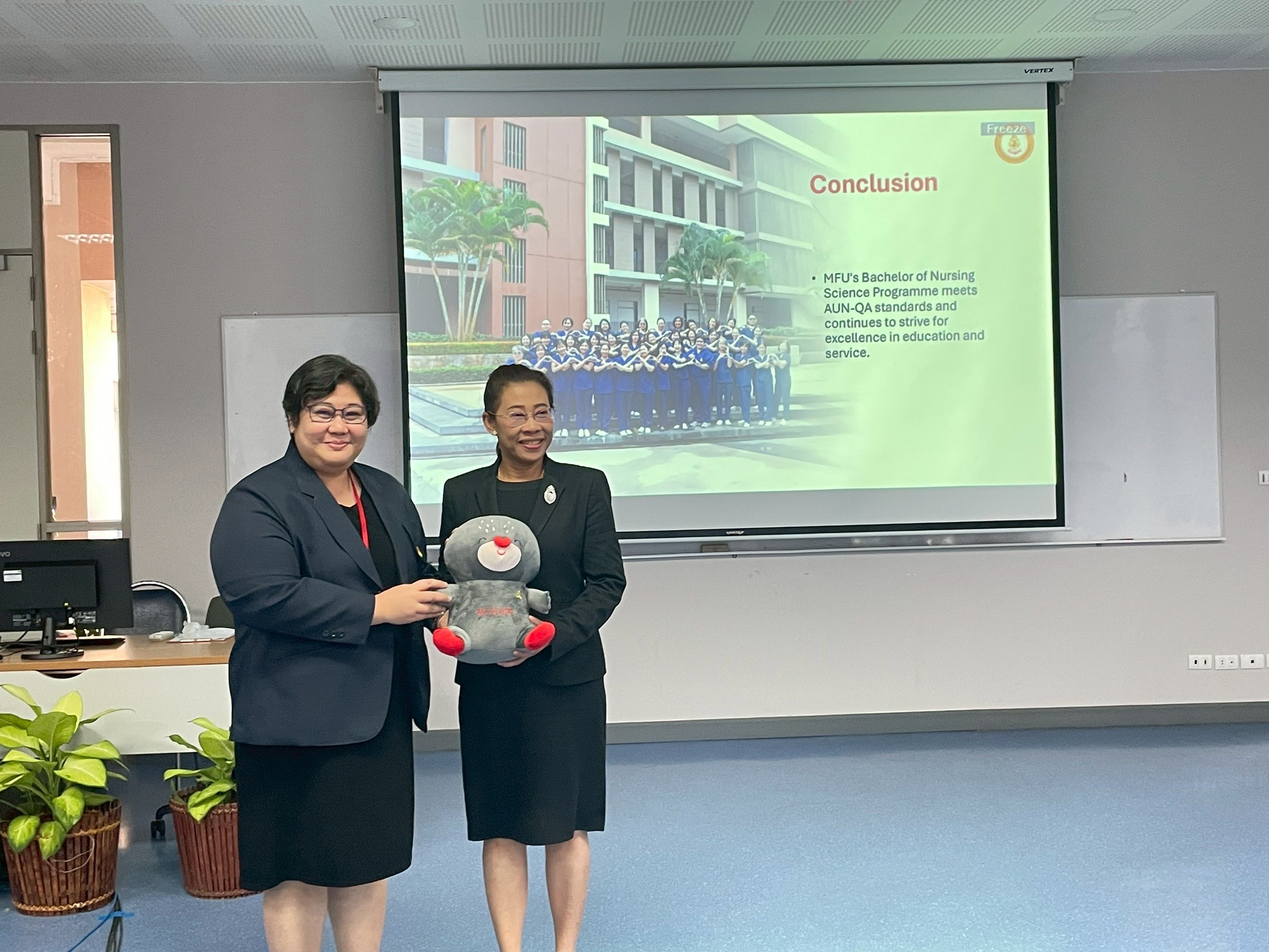 On January 27, 2026, Assistant Professor Dr. Chompoonut Sopajaree, Dean of the School of Nursing, Mae Fah Luang University, together with the executive team, faculty members, and staff, warmly welcomed Assistant Professor Dr.Douangjai Plianbamrung, Director of Boromarajonani College of Nursing, Trang, along with administrators and faculty members, totaling 12 participants. The visit aimed at a study tour and academic exchange on educational quality assurance at the School of Nursing, Mae Fah Luang University, Chiang Rai Province.