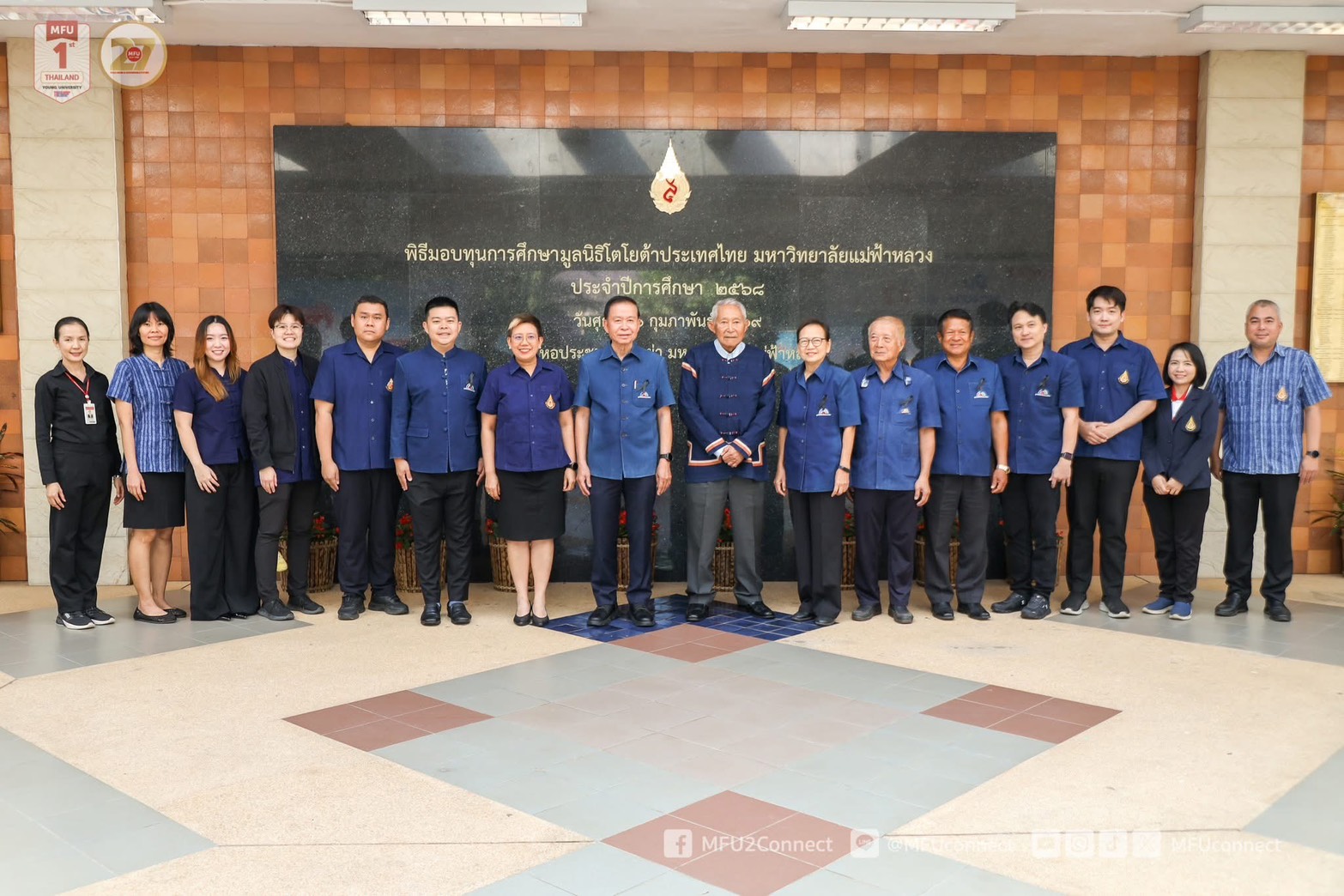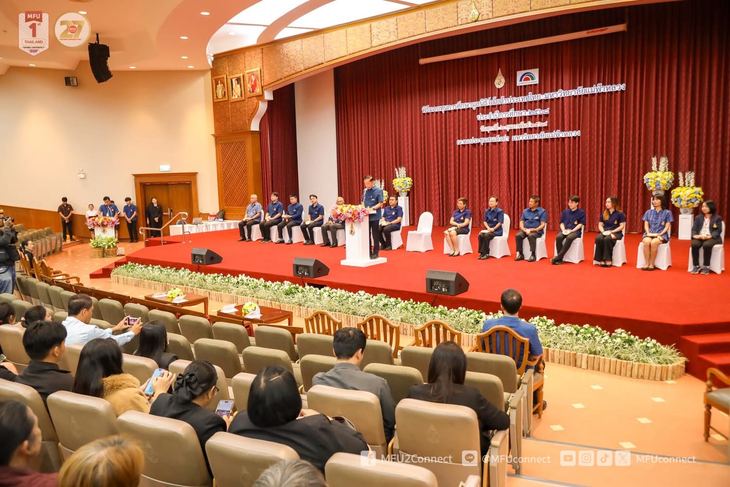The ceremony was presided over by Mr. Ninnart Chaithirapinyo, Vice Chairman of the Toyota Thailand Foundation. Assistant Professor Dr. Romyen Kosaiyakanon, Vice President of Mae Fah Luang University, delivered the welcoming remarks, while Associate Professor Dr. Nuttakan Rungruang, Assistant to the President of Mae Fah Luang University, reported on the background and objectives of the scholarship program. University executives, members of the Toyota Thailand Foundation, faculty members, volunteer teachers, as well as scholarship recipient students, were also in attendance.