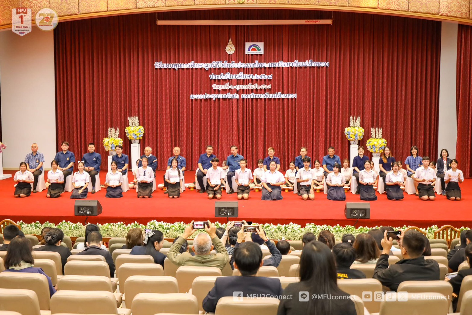 The ceremony aimed to award scholarships to Mae Fah Luang University students and students from schools located in 17 northern provinces. The scholarships included both non-continuous and continuous types. Some upper secondary school students receiving the scholarships will be granted continuous support upon enrolling in higher education at Mae Fah Luang University, thereby expanding educational opportunities and enhancing youth potential through advanced education.