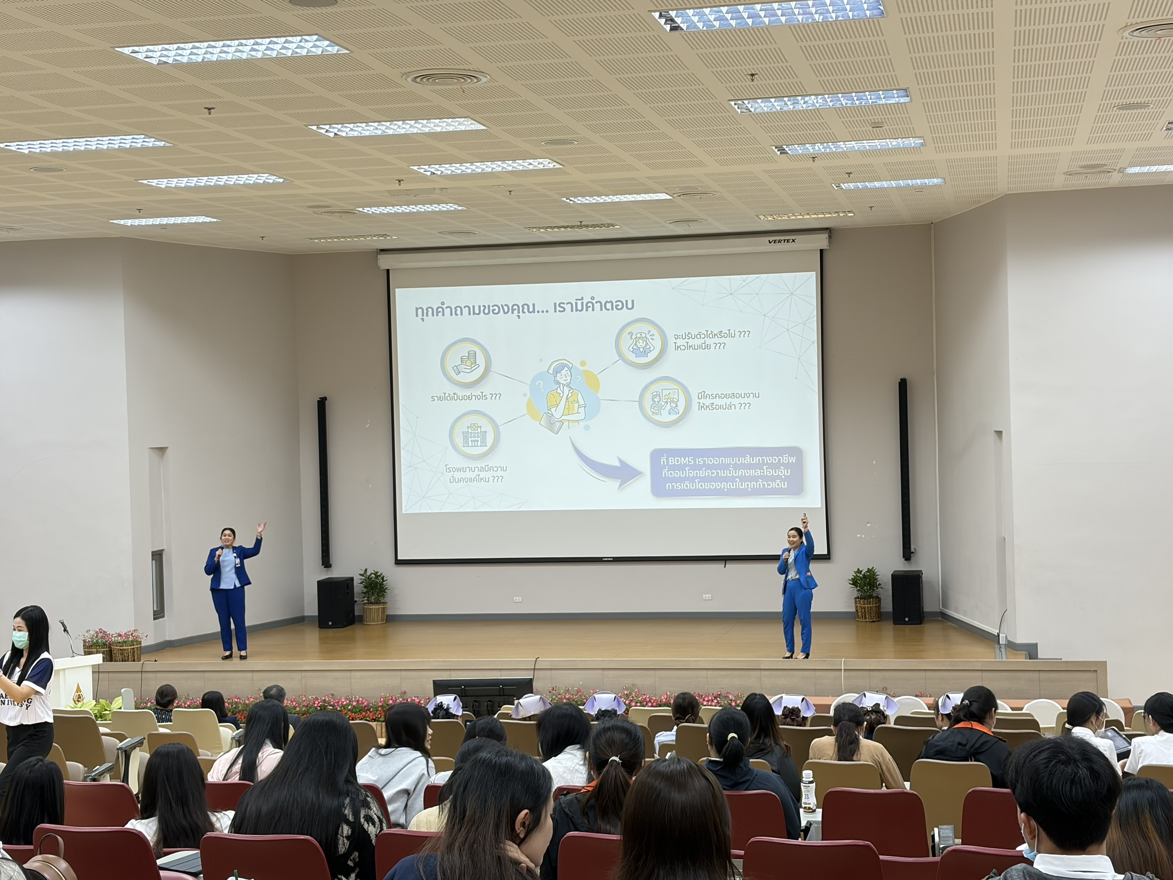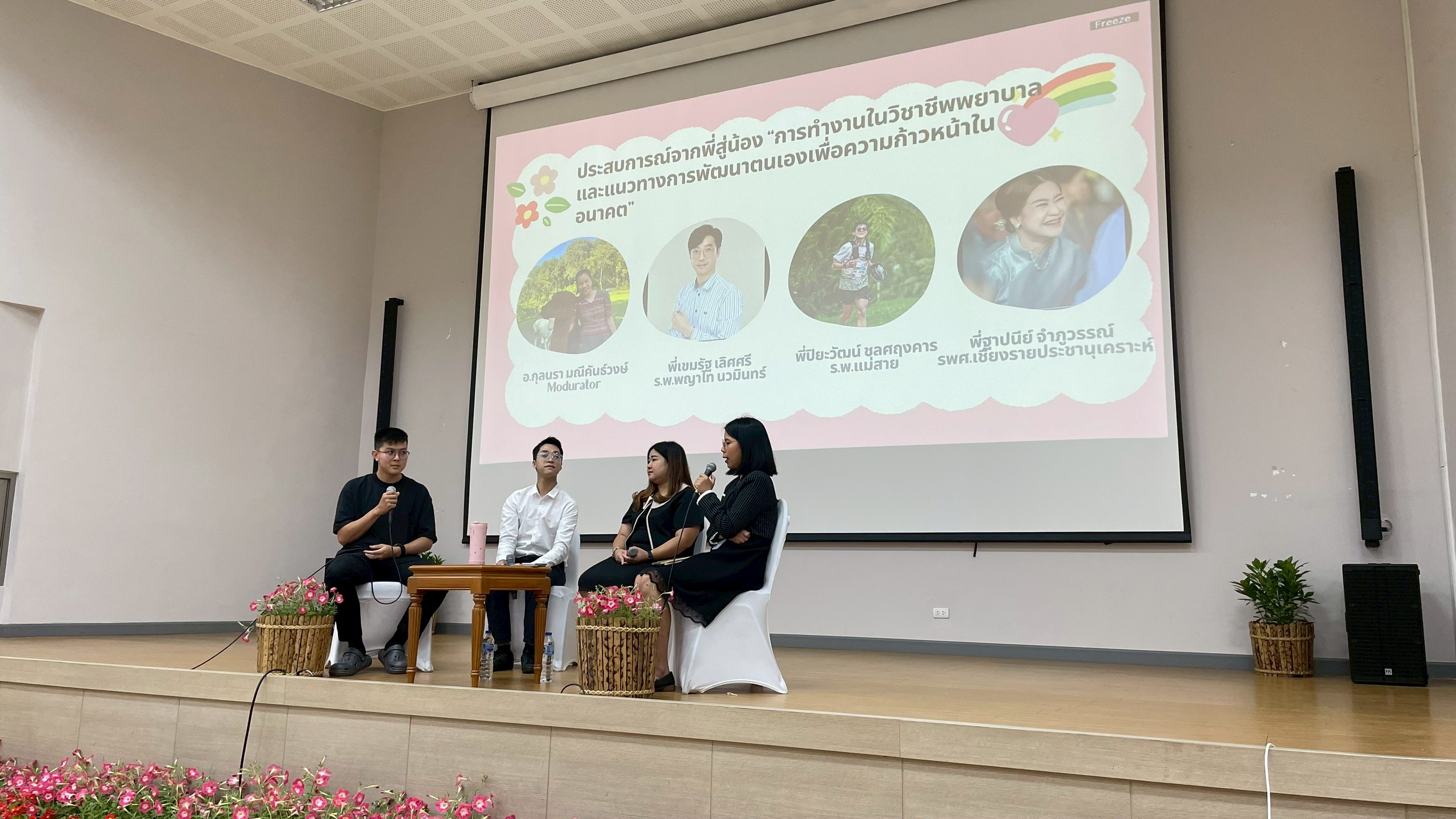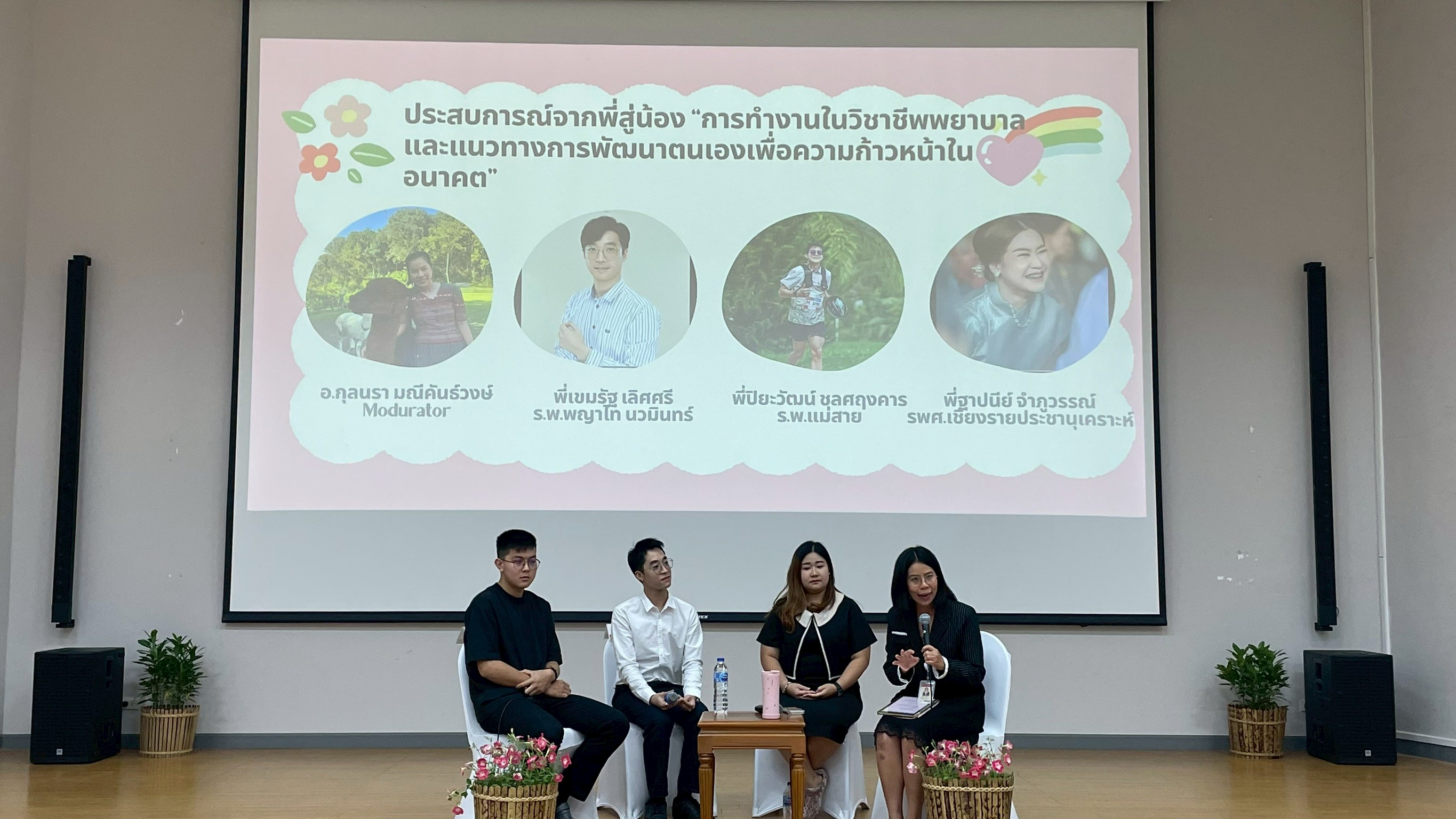 นอกจากนี้ ยังมีการบรรยายพิเศษในหัวข้อ “แนวทางการดำเนินชีวิตพยาบาลวิชาชีพหลังสำเร็จการศึกษา” และ “ทำงานอย่างไรในยุค AI ให้ได้ใจคนโซเชียล” โดยวิทยากรผู้มีประสบการณ์ตรงในวิชาชีพ รวมถึงกิจกรรมแลกเปลี่ยนประสบการณ์จากรุ่นพี่ศิษย์เก่า เพื่อสร้างแรงบันดาลใจและแนวทางในการพัฒนาตนเองในสายวิชาชีพพยาบาล