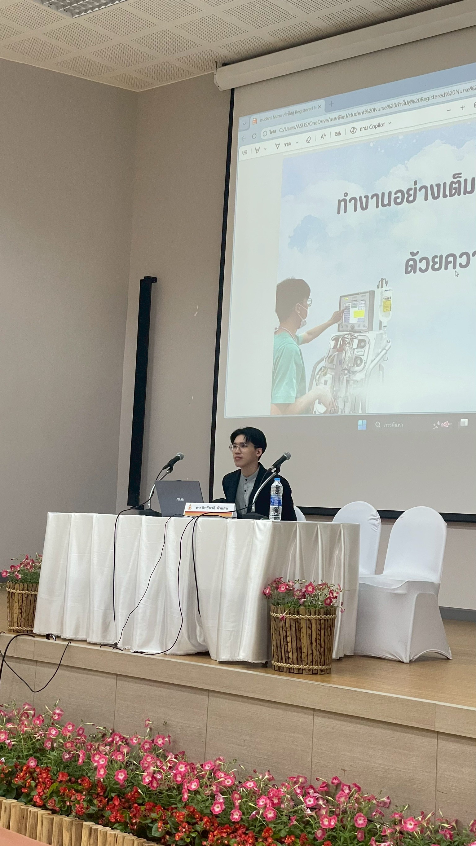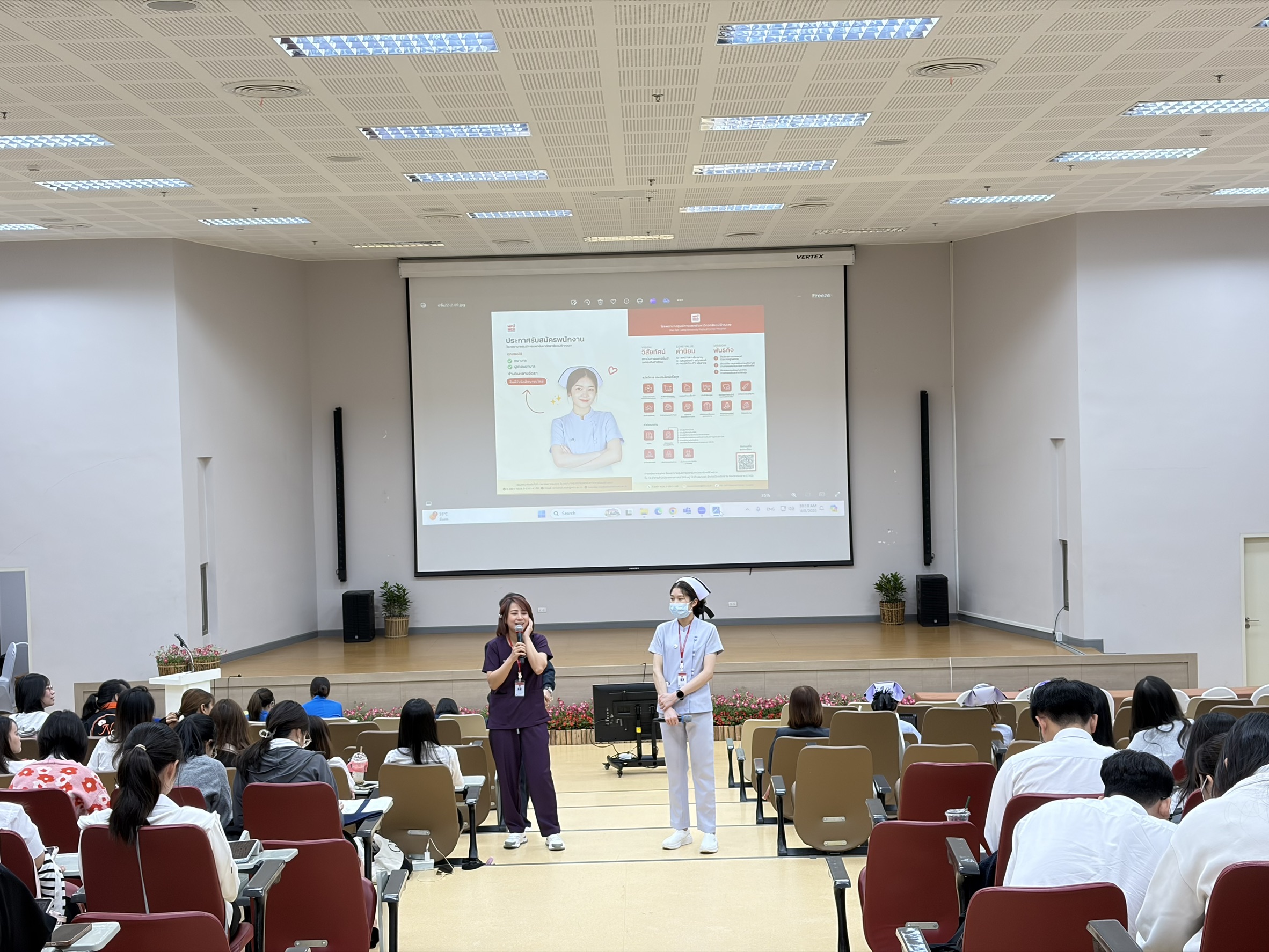 On April 7, 2026, the program commenced with an opening ceremony presided over by Assistant Professor Dr. Chompunut Sopajaree, Dean of the School of Nursing. A special session was also delivered by the President of the Nurses’ Association of Thailand, Northern Region, who provided valuable insights and encouragement to the students.