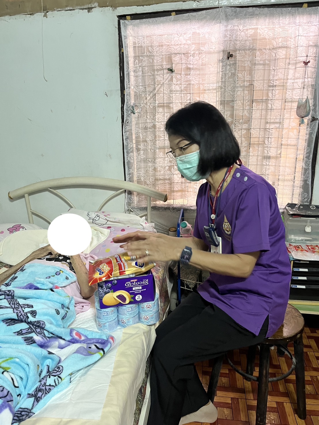 On April 8, 2026, the Princess Mother's Medical Volunteer, led by Assistant Professor Dr. Ratchanee Mitkitti, in collaboration with volunteers and Village Health Volunteers (VHVs), conducted home visits for homebound and bedridden patients in Nang Lae and Mae Khao Tom subdistricts, Mueang District, Chiang Rai.