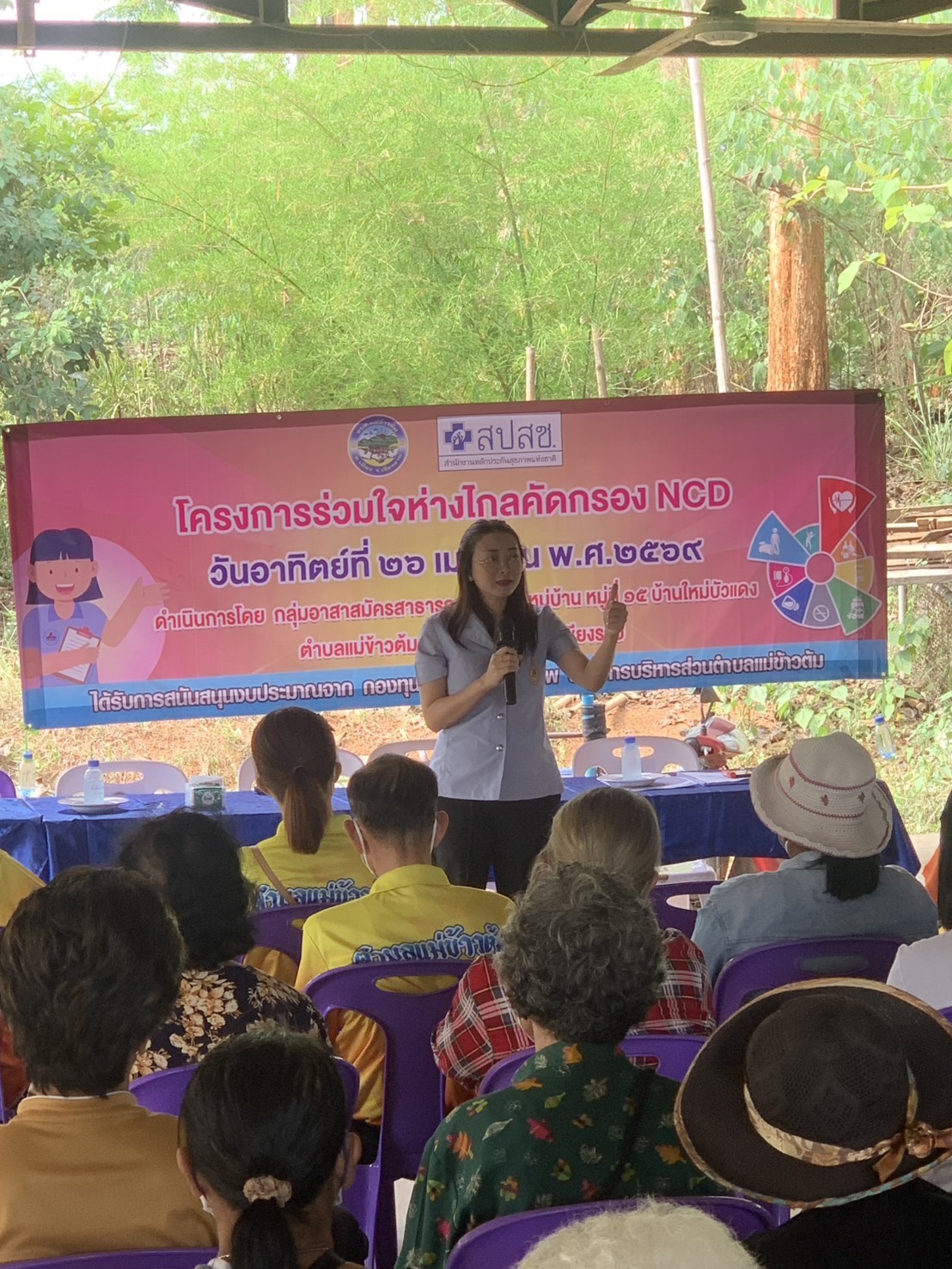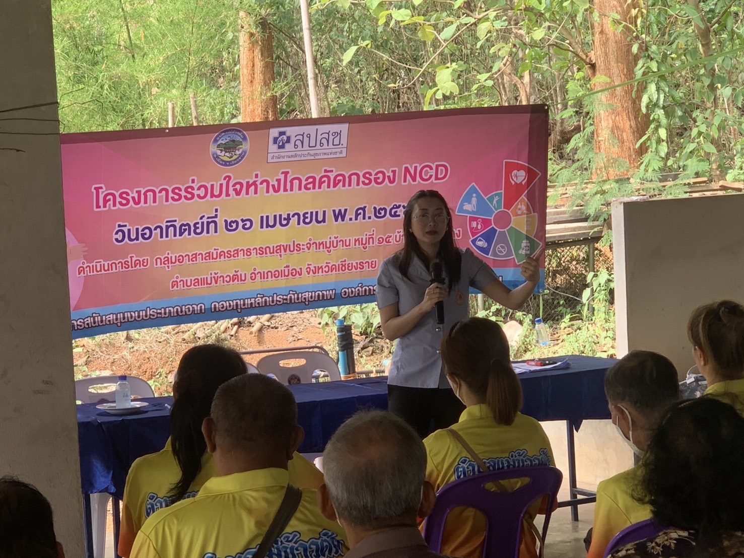 โครงการดังกล่าวจัดขึ้นโดยกลุ่มอาสาสมัครสาธารณสุขประจำหมู่บ้าน (อสม.) เพื่อส่งเสริมให้ประชาชนได้รับการตรวจคัดกรองโรคไม่ติดต่อเรื้อรัง (NCD) และสร้างความรู้ ความเข้าใจในการป้องกันและควบคุมโรค อันจะนำไปสู่การมีสุขภาวะที่ดีอย่างยั่งยืนในชุมชน